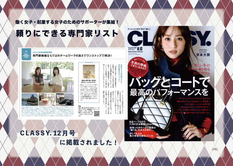 司法書士部門補助者の花森です。なんと!オシャレも人生も「自分で選ぶ」のCLASSY.12月号に、かわた合同法務事務所が掲載されました!!働く女子・起業する女子のためのサポーターが集結!頼りにできる専門家リストという企画です。ぜひ、ご一読ください!!| 2023/11/01 更新 | スタッフ(girls) | - たまご煎餅